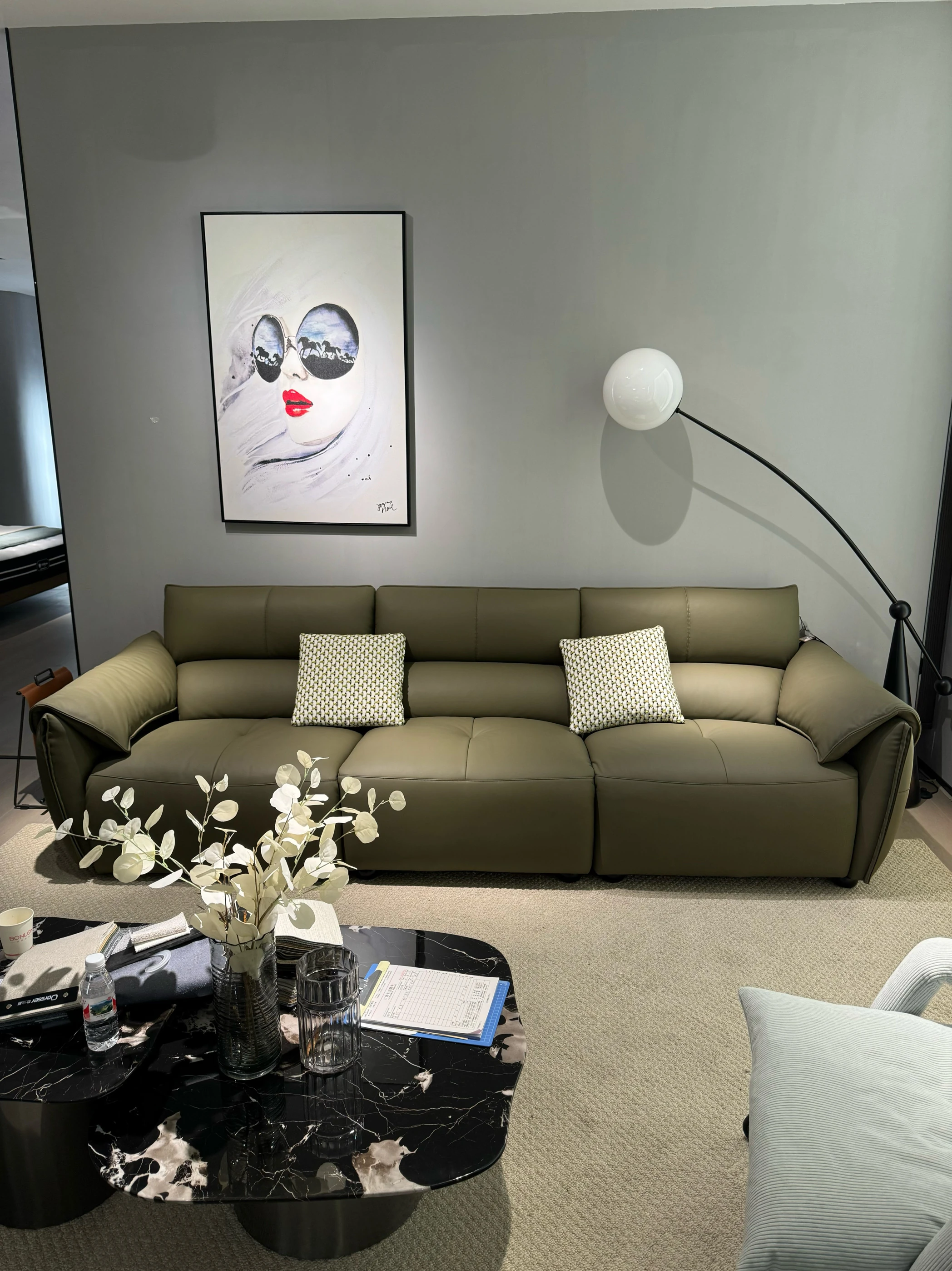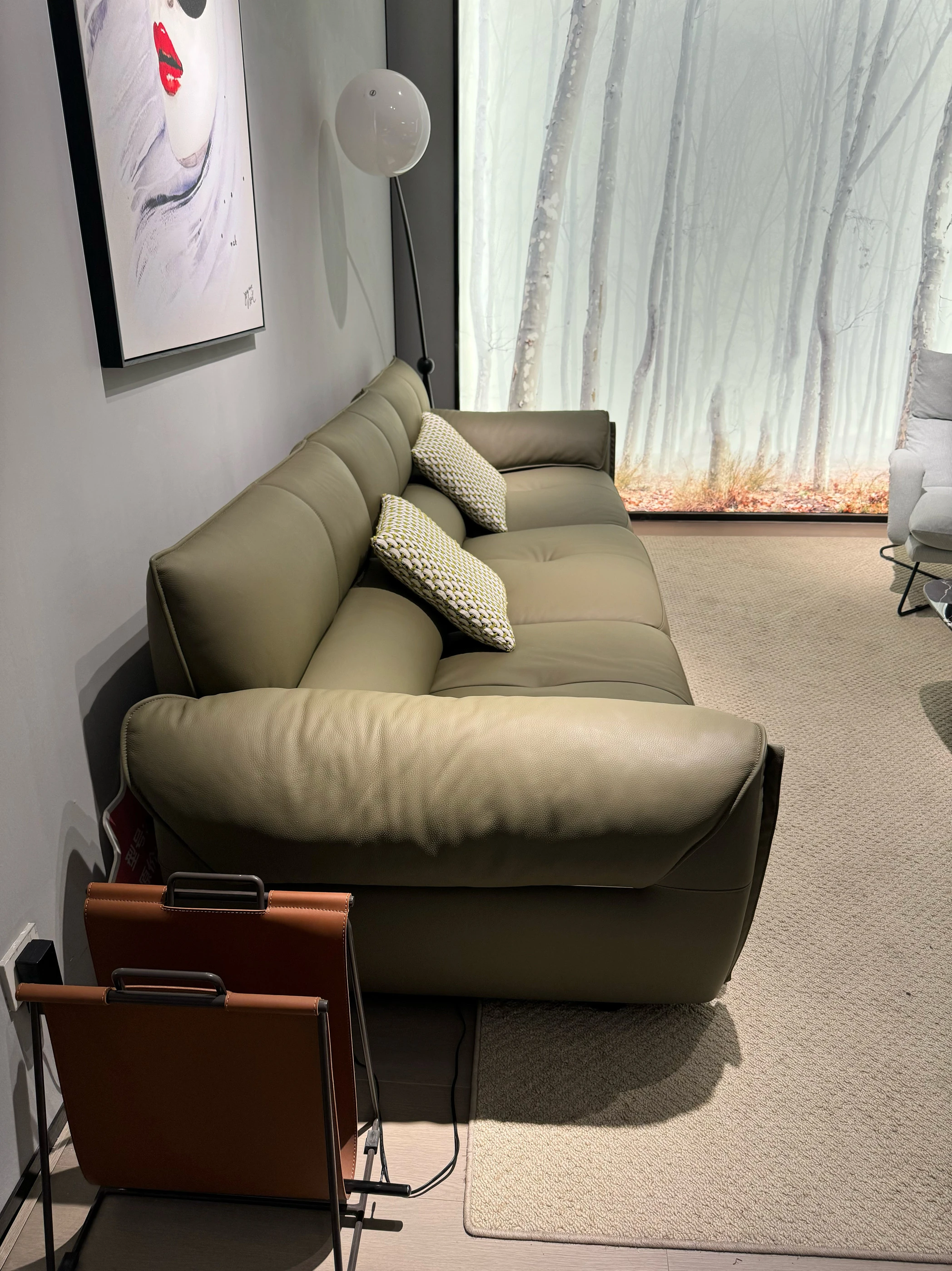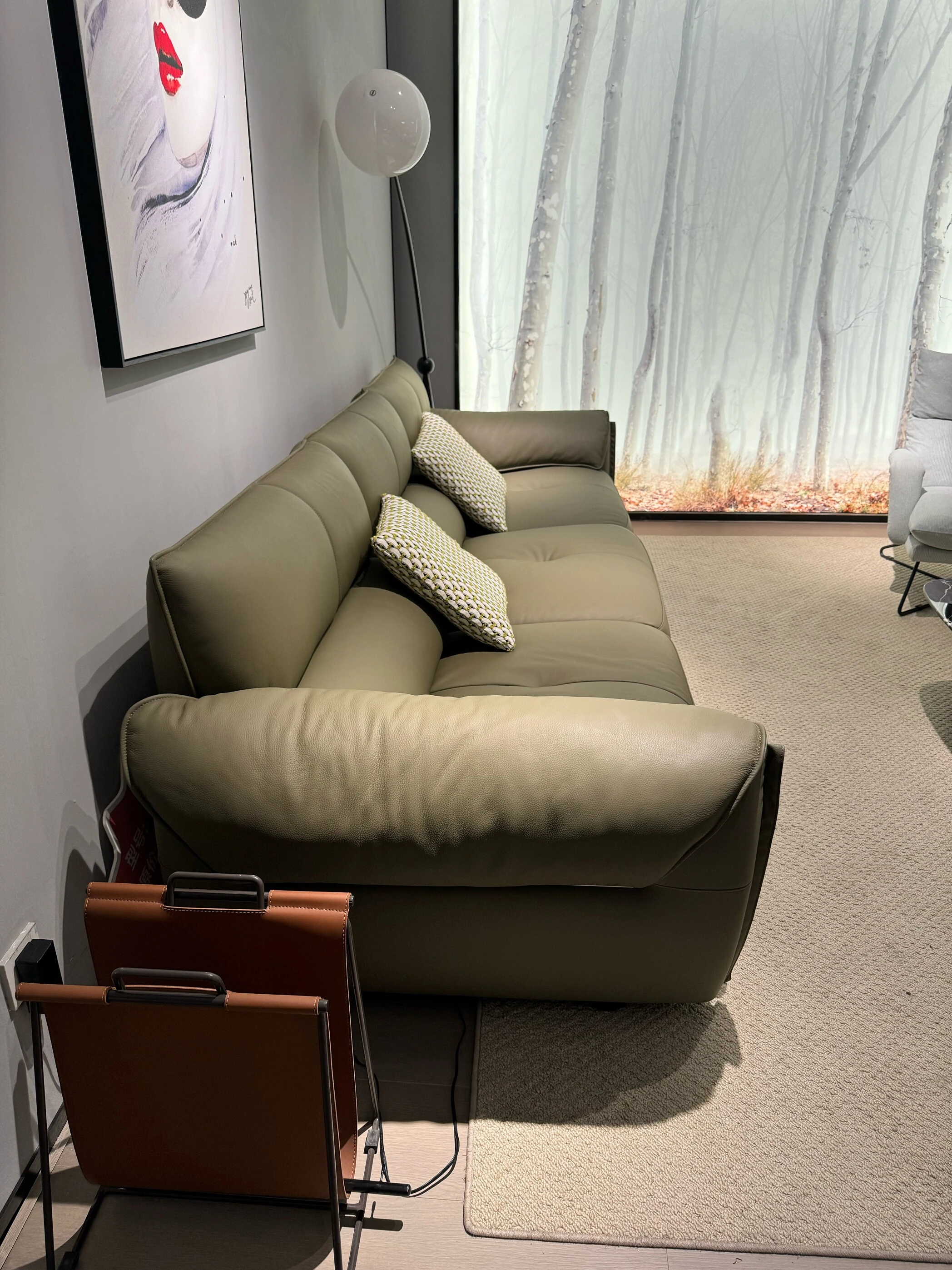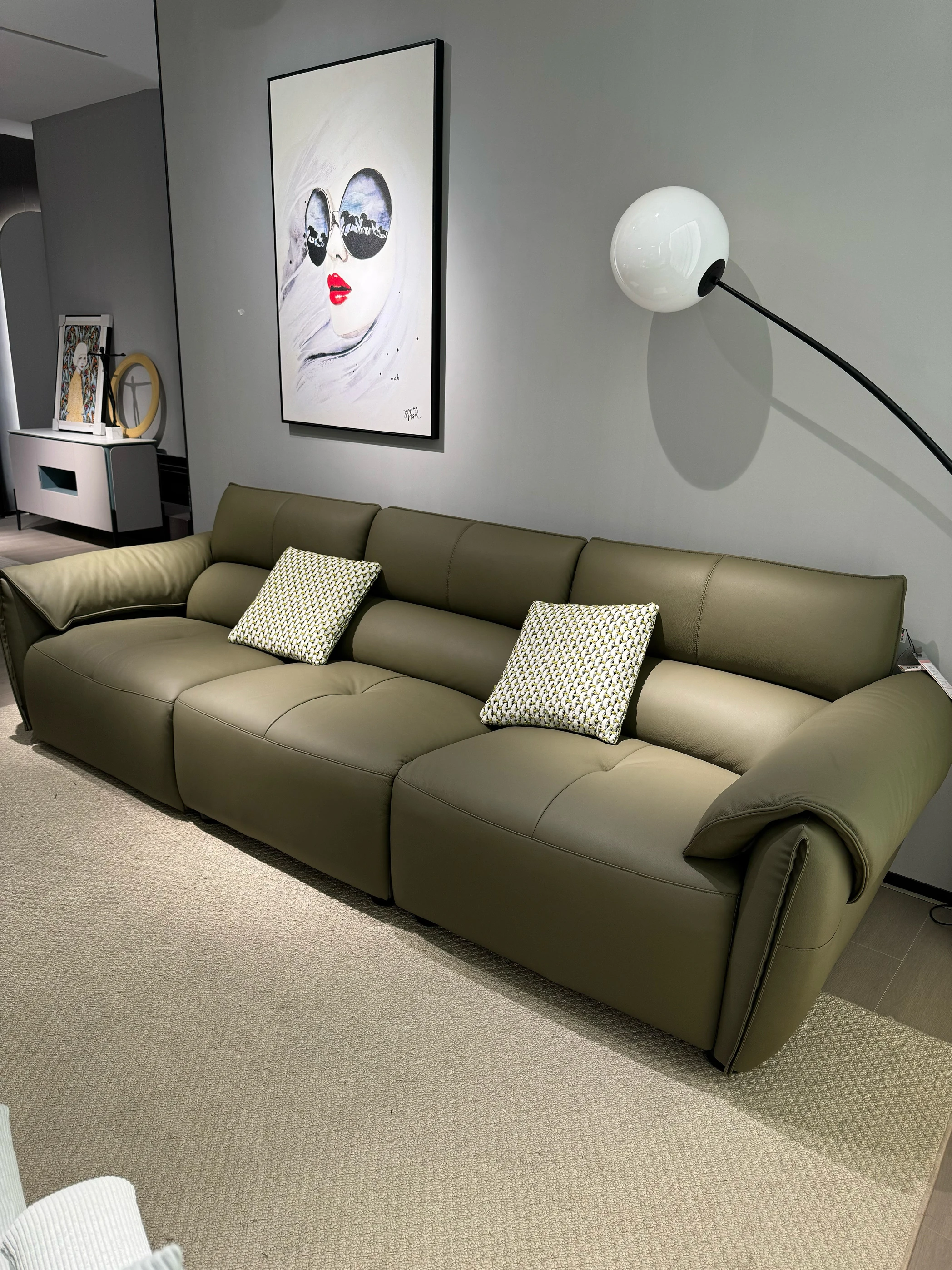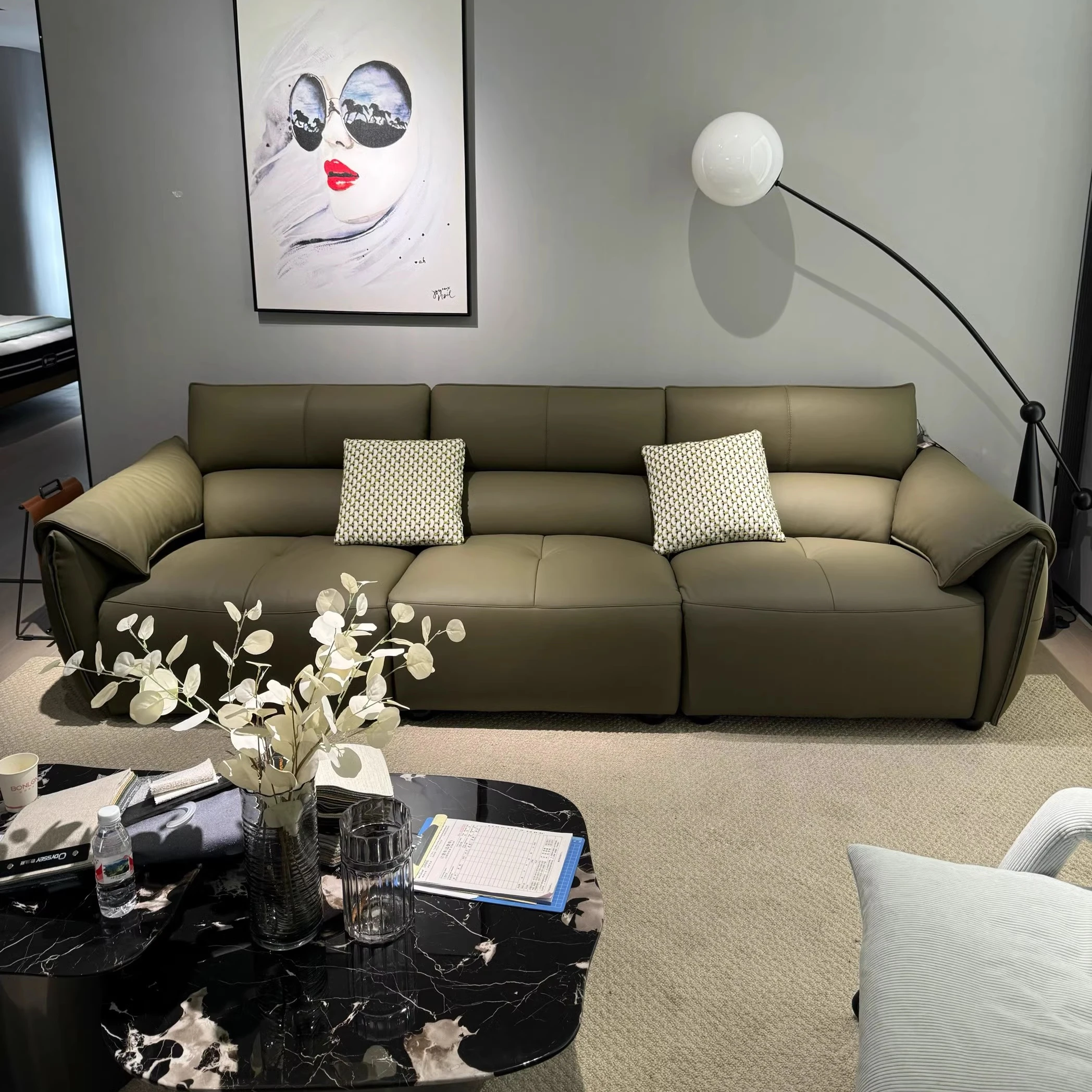 モダンでシンプルなリビング用多機能電動ソファ|壁に寄せずに設置可能|調整可能なヘッドレスト付き|高級本革使用|快適な座り心地でスタイリッシュな空間を演出!