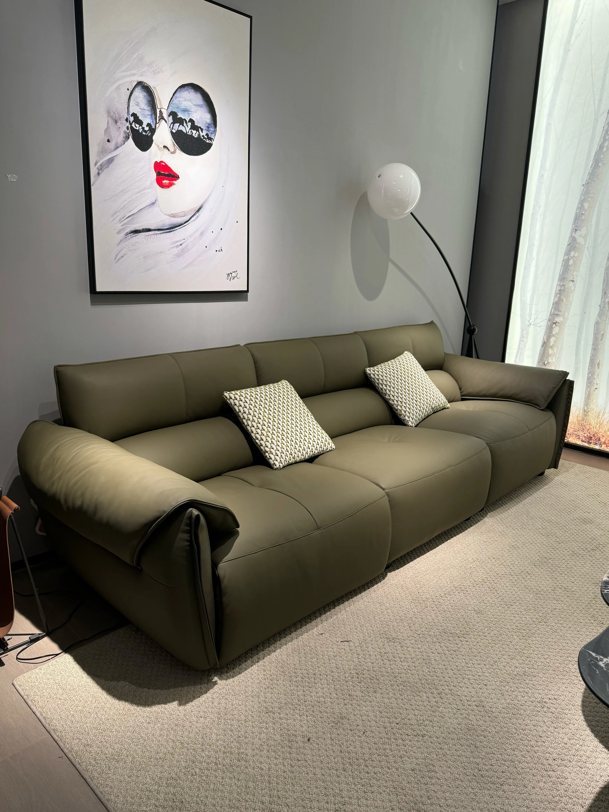 イタリアンラグジュアリー本革ソファ - コンパクトなH型3人掛け、リビングに最適な多機能デザイン!小さなスペースでもスタイリッシュに。