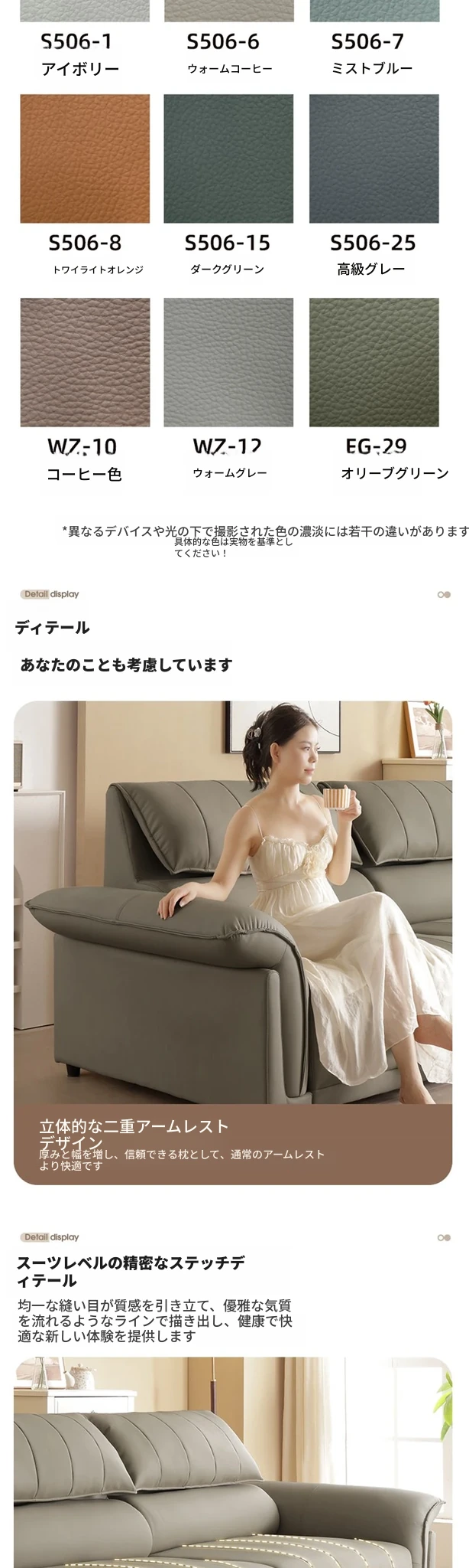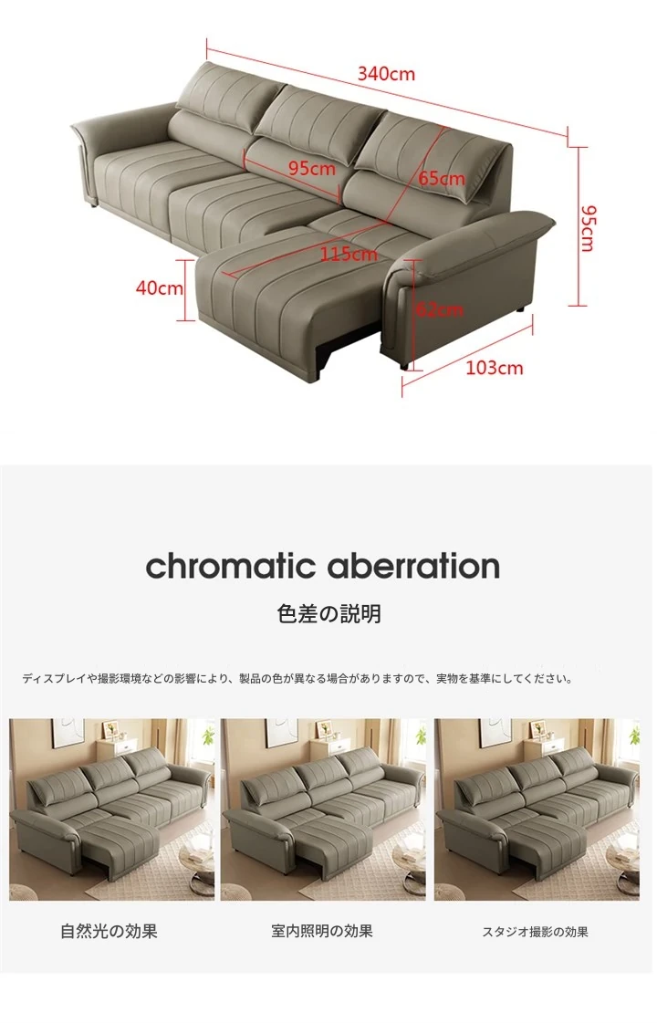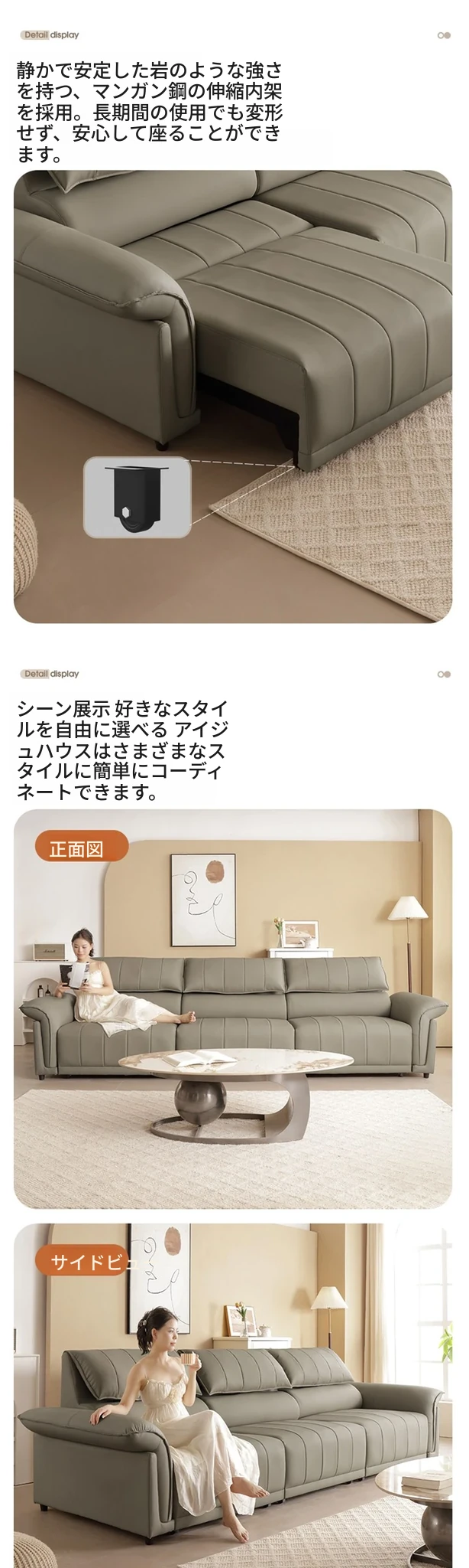 大三人位3.4M【アップグレード版-トップグレイン牛革+50Dリバウンドスポンジ】全電動
