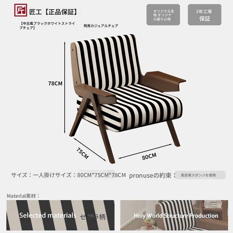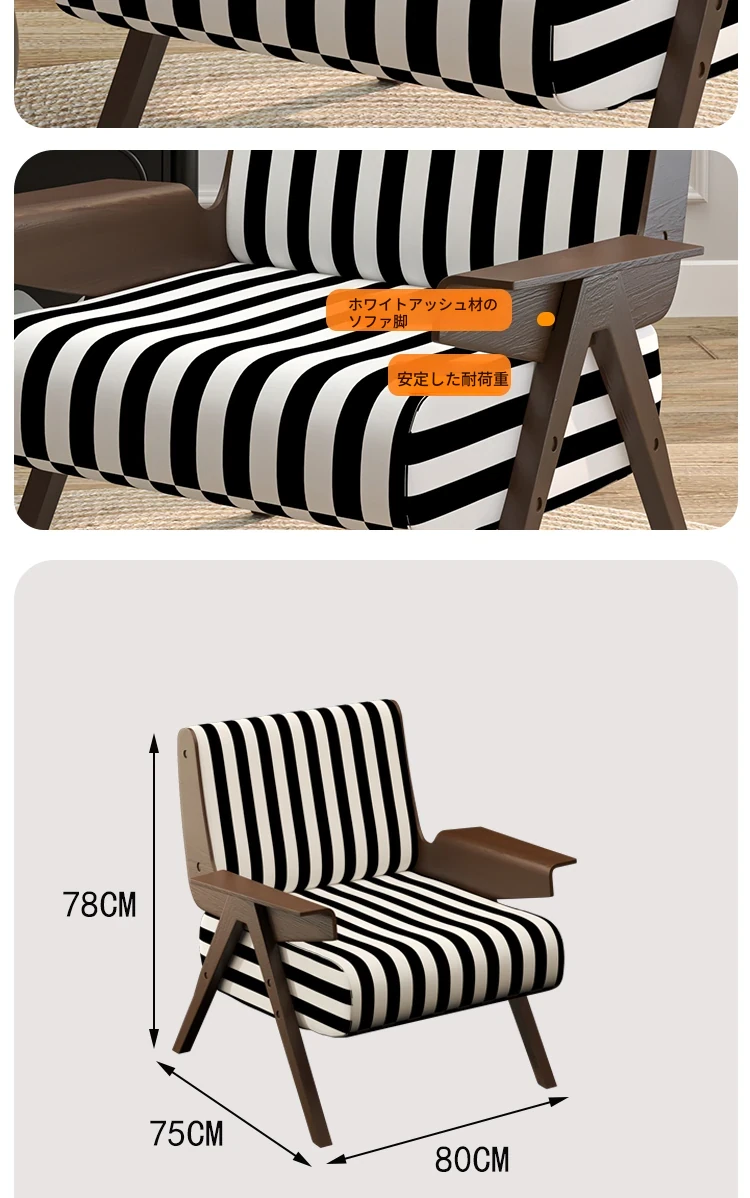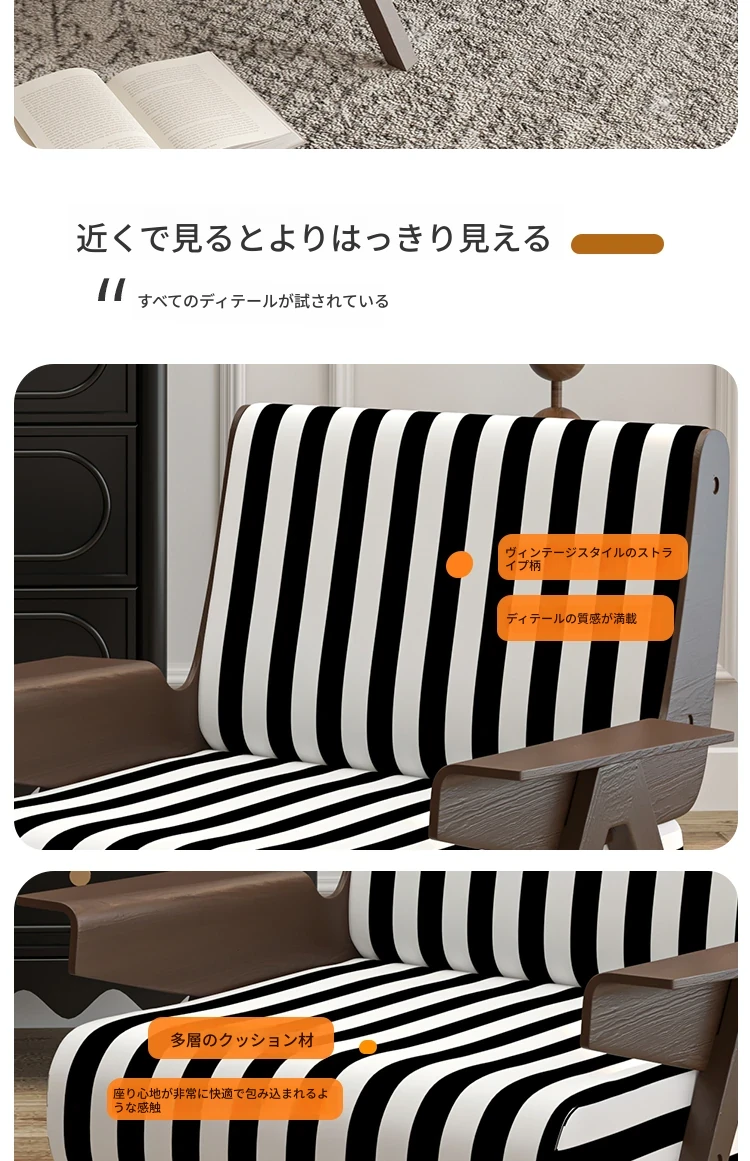 ブラックホワイトストライプ 水曲柳無垢材+取り外し可能+【クッション付き】