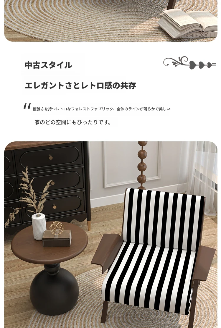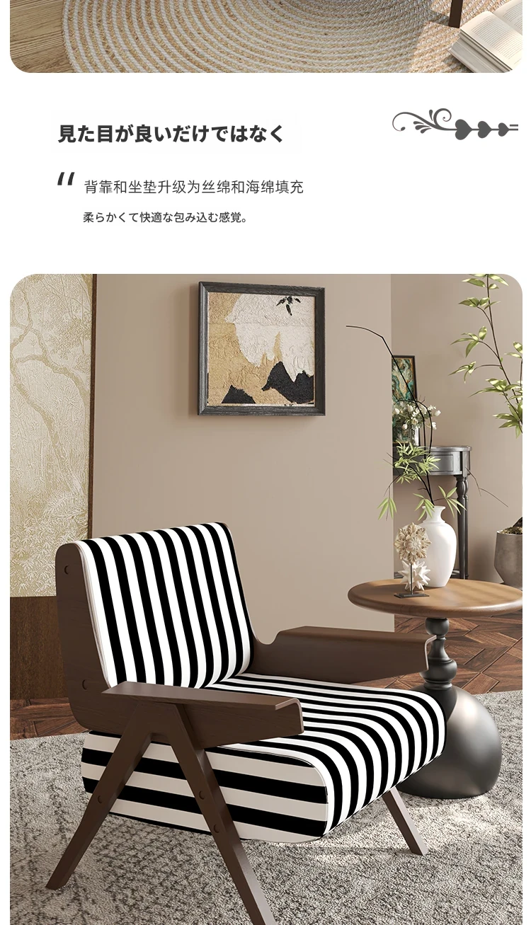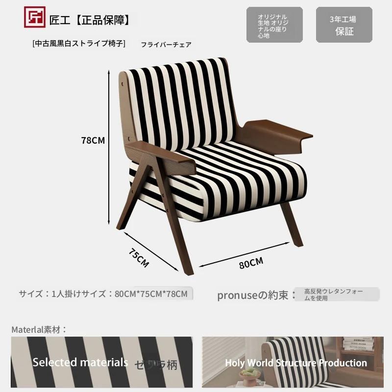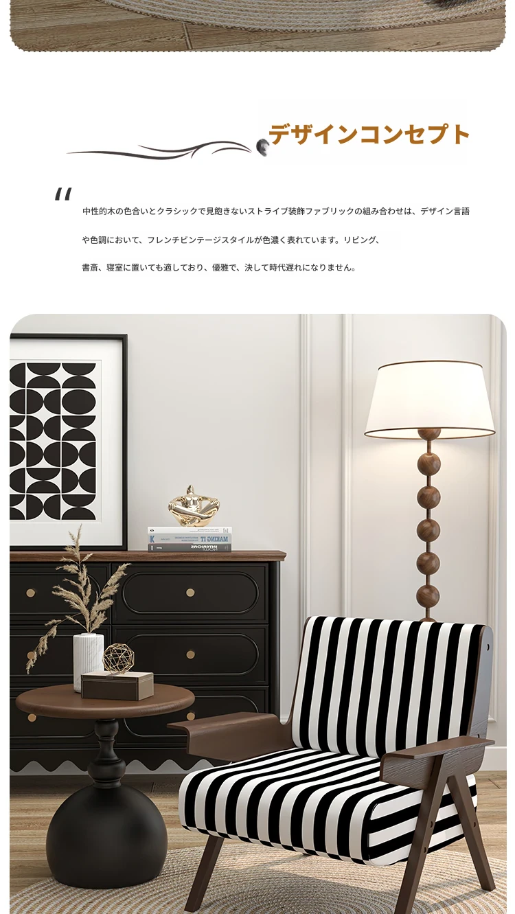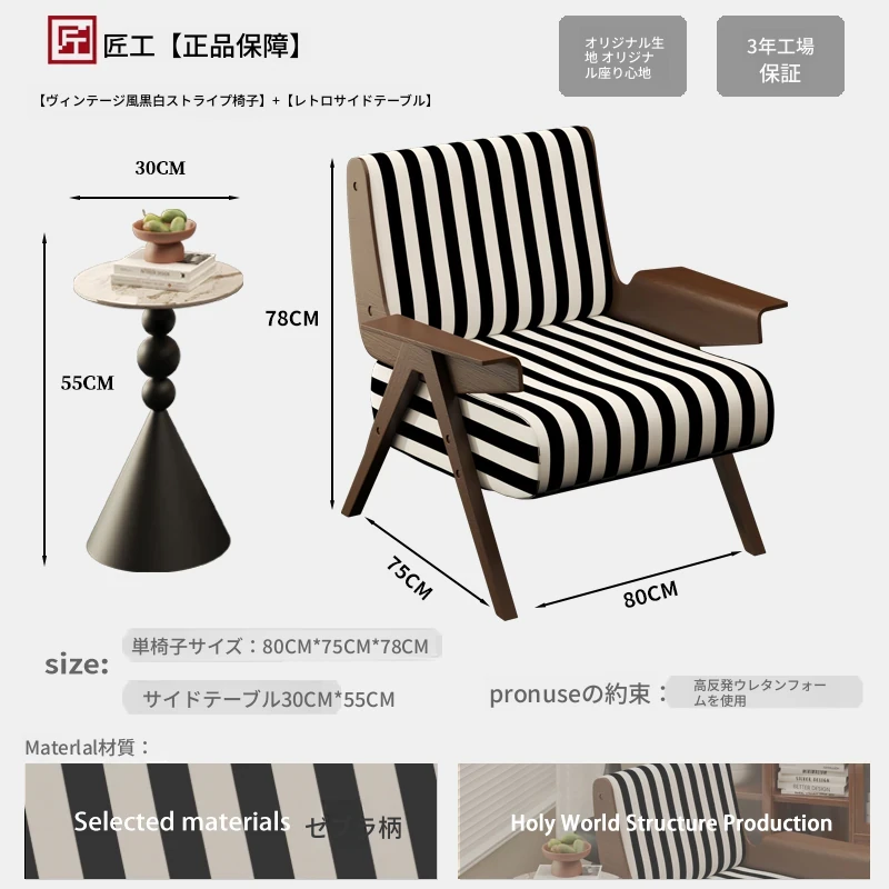 1脚のブラックホワイトストライプチェア+レトロサイドテーブル【クッション付き】