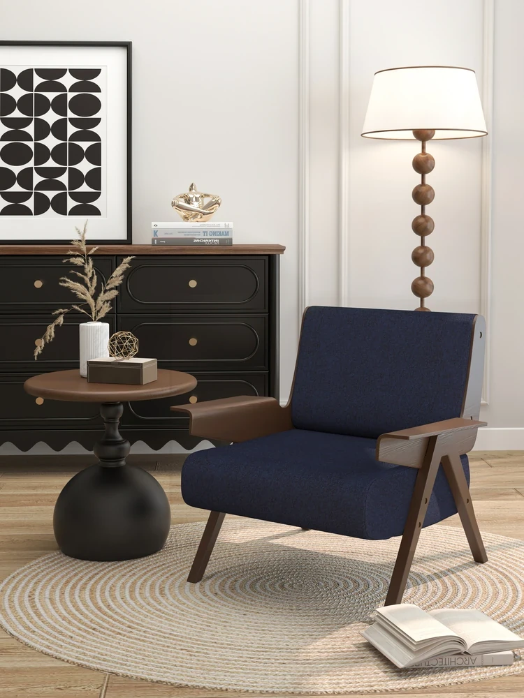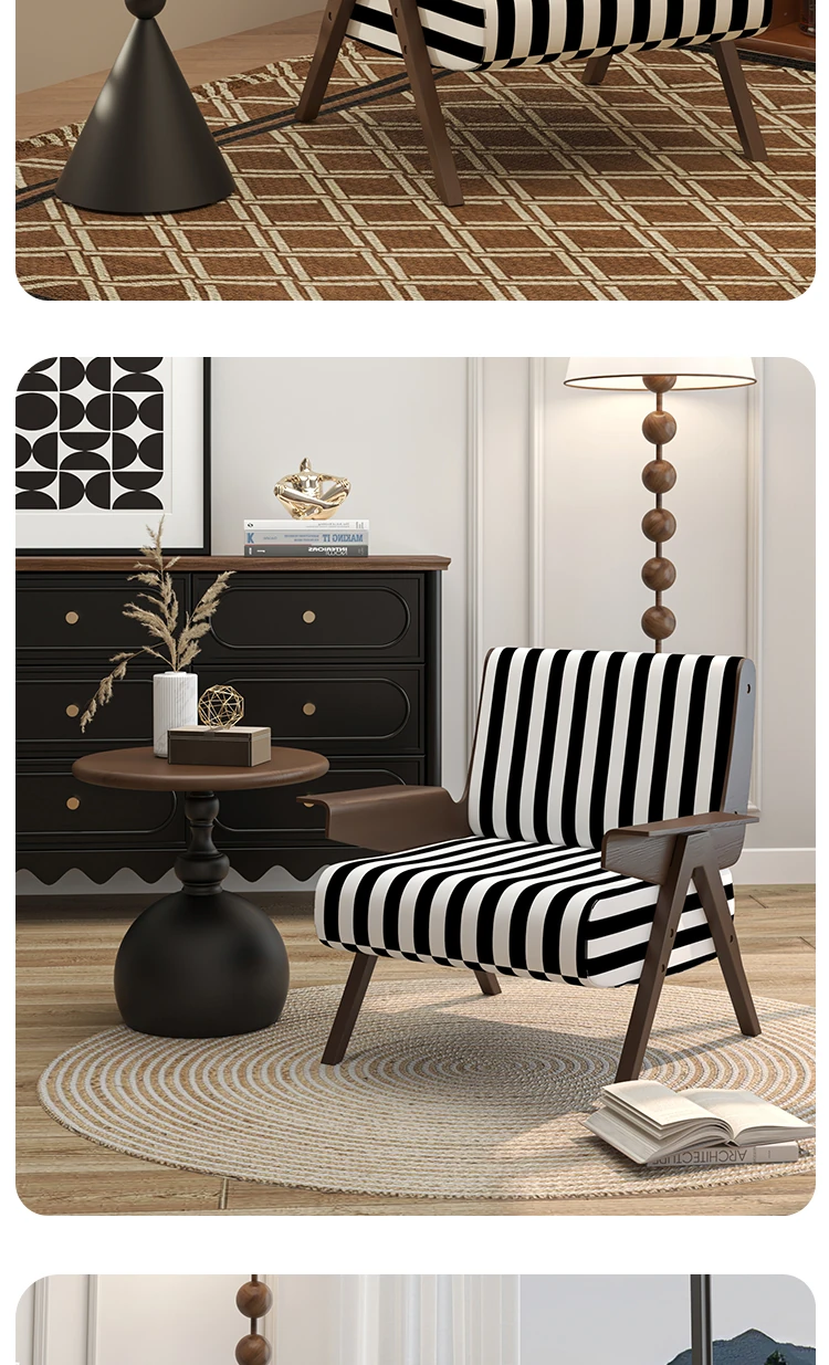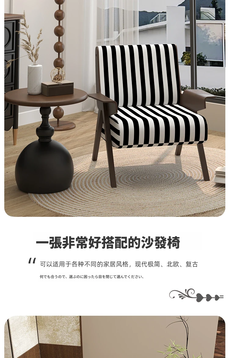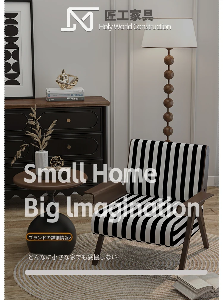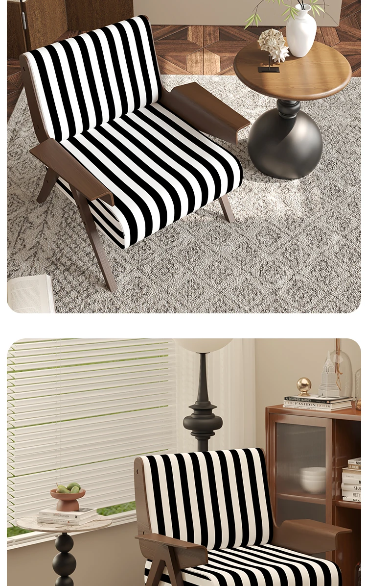 1脚のブラックホワイトストライプチェア+レトロサイドテーブル【クッション付き】