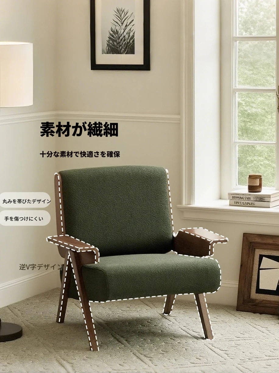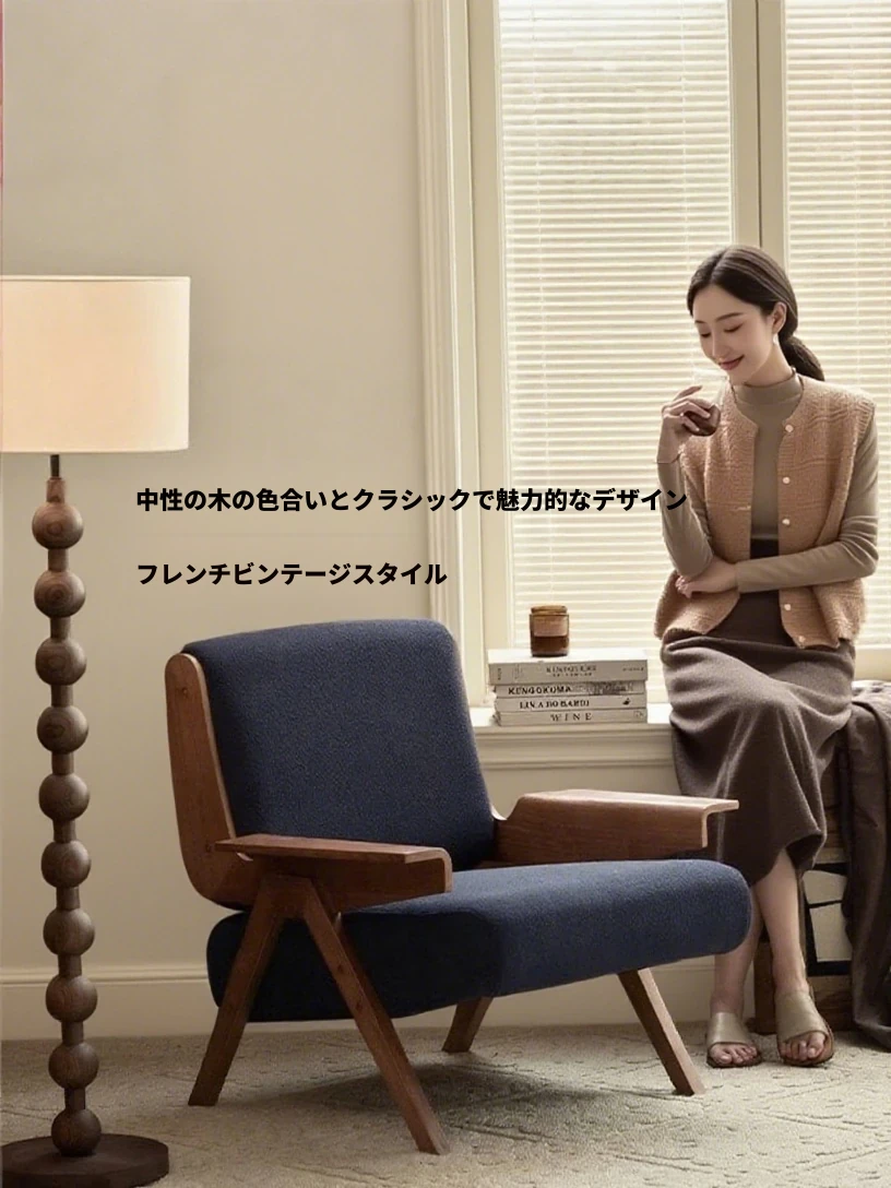 高級感溢れるフレンチヴィンテージスタイルの一人掛けソファ、リビングやバルコニーに最適なホワイトアッシュ製のデザイナーチェア。心地よいリラックスタイムを提供します。