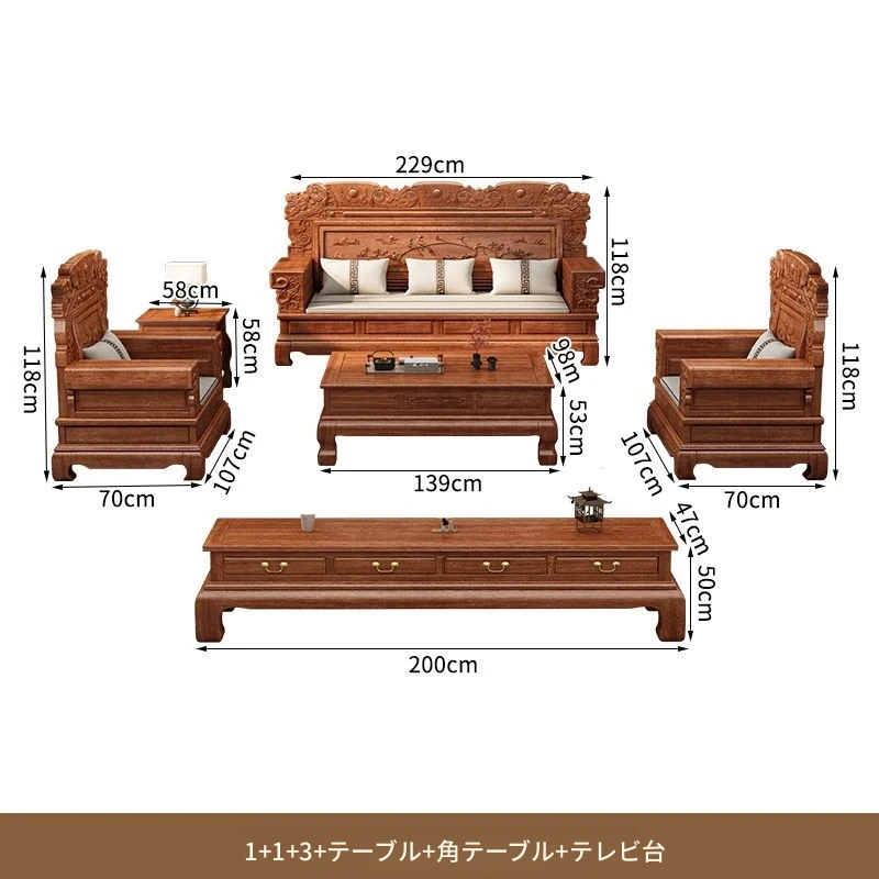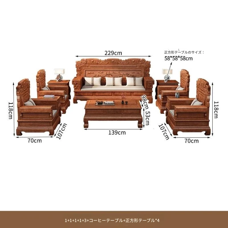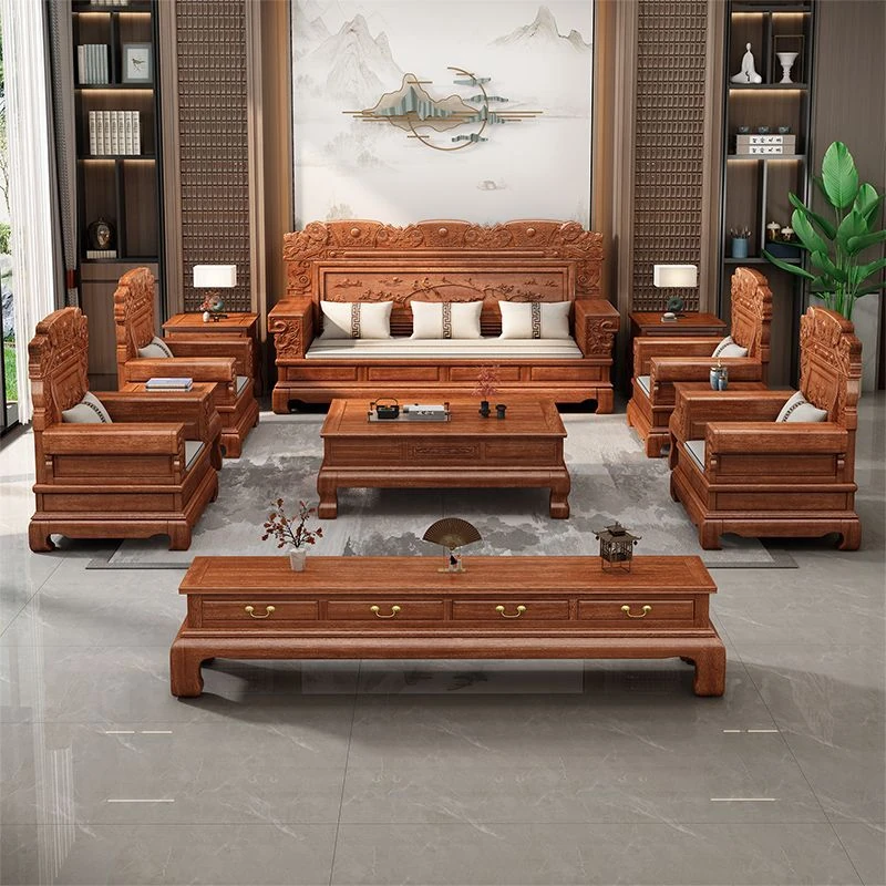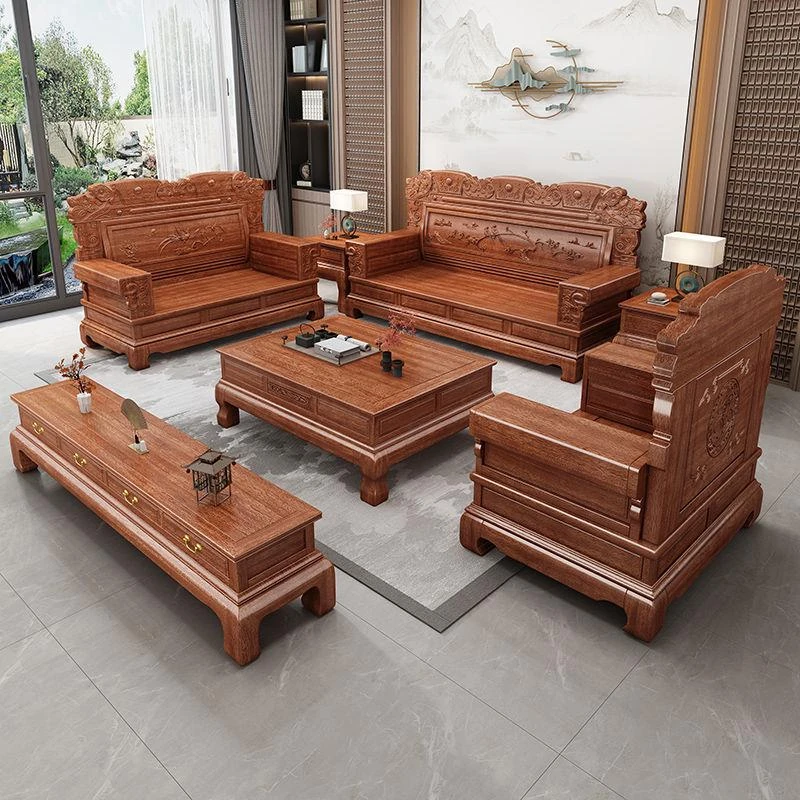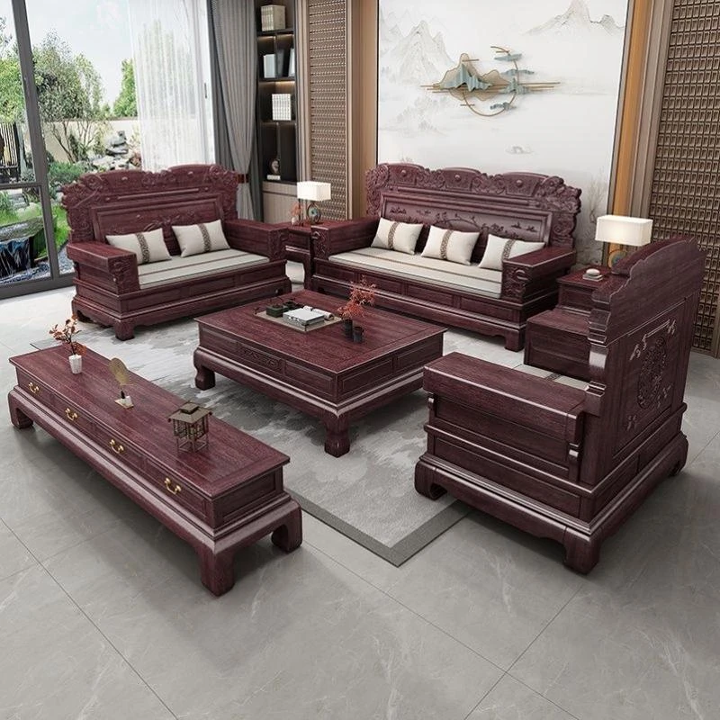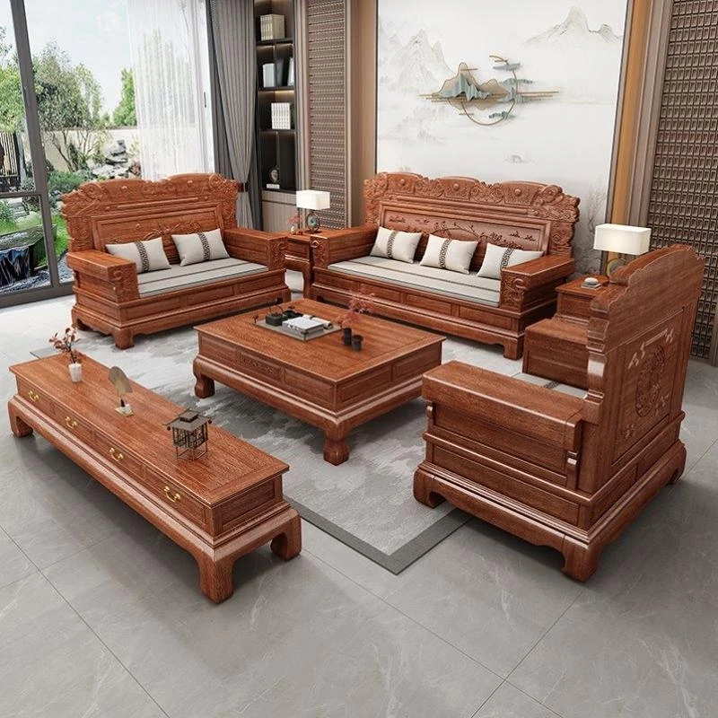 パイナップルウッド無垢材ソファ - アンティークスタイルの花梨木製、リビングルームに最適な中華明清古典デザイン - 冬夏兼用、別荘にもぴったり!