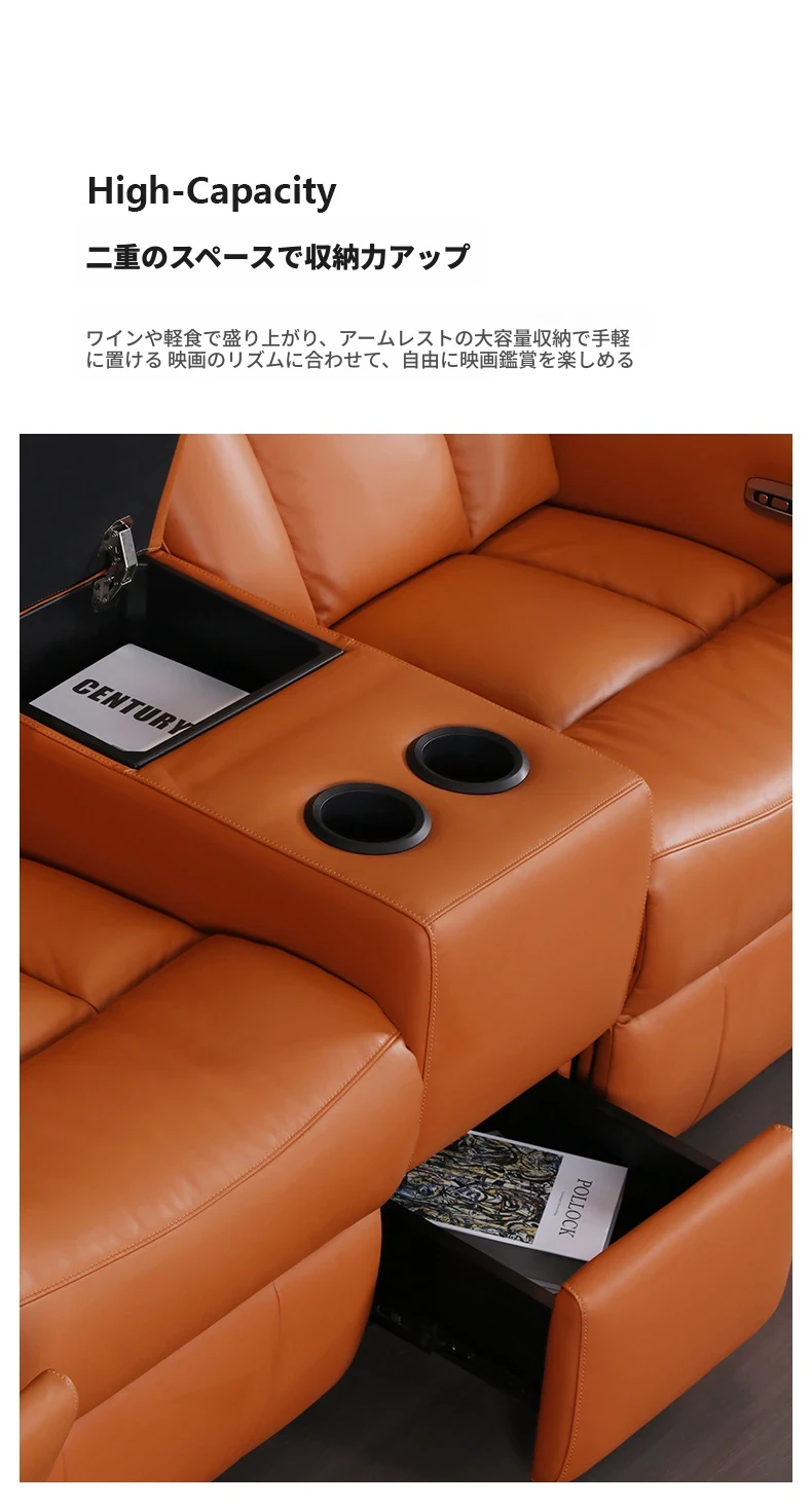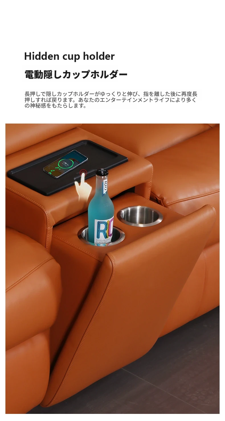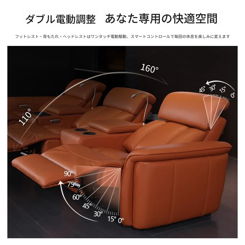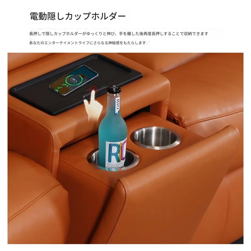 3人掛け+2ストレージテーブル/ダブル電動【1つのワイヤレス充電隠しカップホルダー付き】