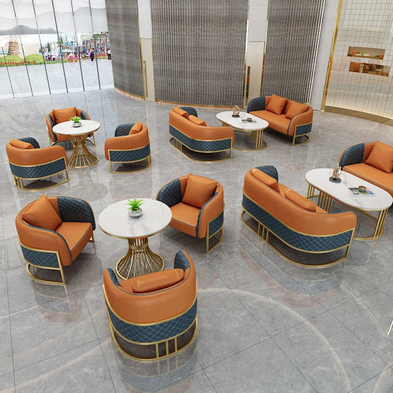 Nordic Chic Upholstery Sofa and Coffee Table Set - Ideal for Beauty Salons, Hotel Lobbies, and Business Reception Areas