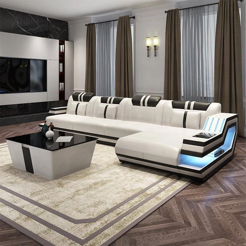 LED Sofa with USB Music Speakers - Modern Multifunctional Leather Sofa Set for Living Room