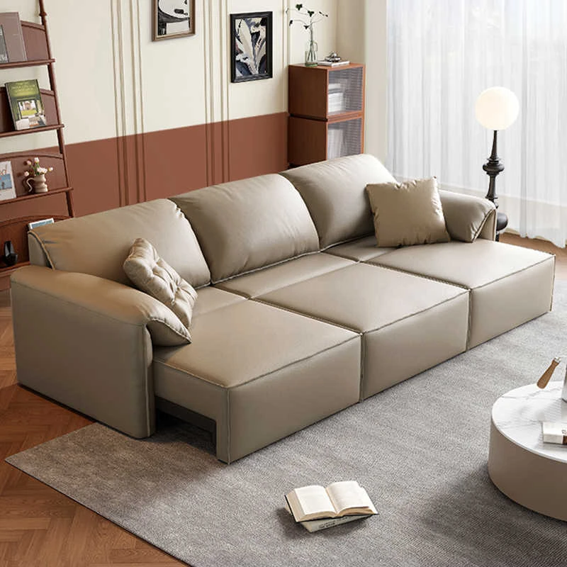 "Luxurious Italian Minimalist Leather Sofa Bed with Electric Function - Space-Saving Design Perfect for Any Living Room, Ideal for Wall-Free Spaces!"