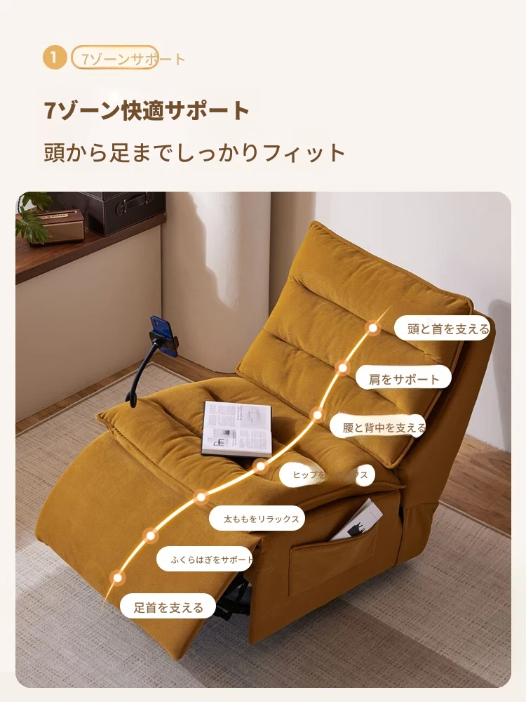リラックスできるラウンジソファ!最上級の宇宙型一人用ソファ、軽やかで贅沢なデザイン。小さなリビングにもぴったりな多機能電動リクライニングチェア。美しいネイルを楽しむための快適空間を提供します!