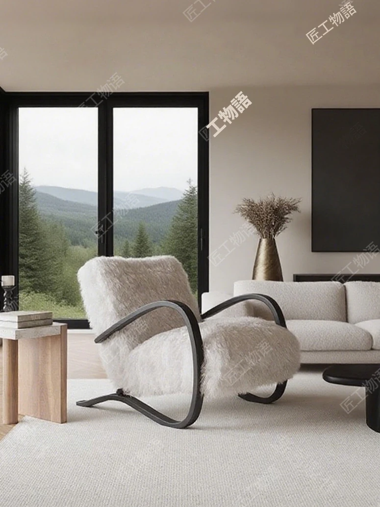 ラグジュアリーなイタリアンシンプルデザインのロングファーペルソナソファチェア - モダンでミニマリストなリラックスチェア、スタイリッシュな背もたれ付き!あなたのリビングに優雅さと快適さをプラス!